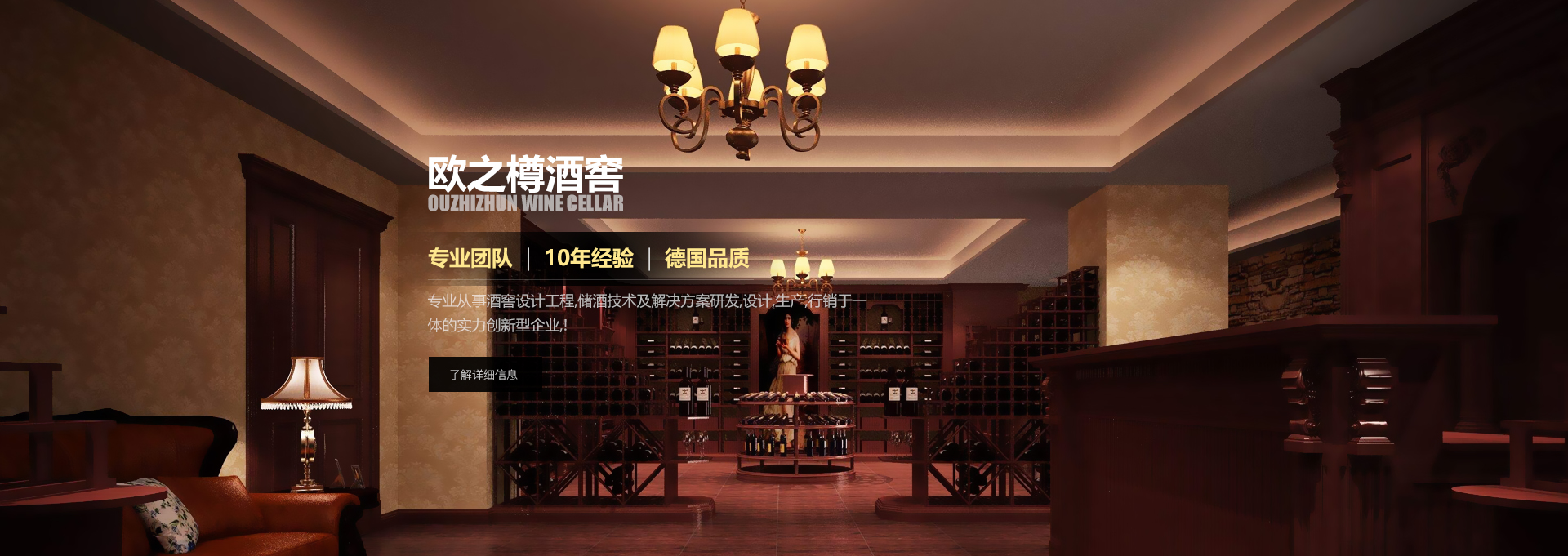 歐之樽酒窖專業(yè)的設(shè)計團(tuán)隊,通過學(xué)習(xí)歐美成功酒窖的經(jīng)驗與國內(nèi)市場相結(jié)合,使得我們的設(shè)計充滿著歐美氣息的中國風(fēng)。能讓你在緊張的城市氛圍中找到在大自然 中享受美酒的感覺。歐美進(jìn)口的全自動控溫控濕系統(tǒng)既穩(wěn)定又方便,
